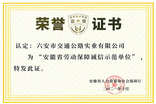 安徽省人力資源和社會(huì)保障局認(rèn)定公司為安徽省勞動(dòng)保障誠(chéng)信示范單位。