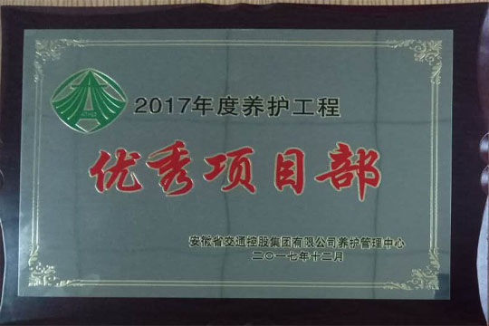 2017年12月14日,2017年度瀝青路面養(yǎng)護(hù)工程交工驗(yàn)收暨總結(jié)表彰大會(huì)在合肥召開,六安市交通公路實(shí)業(yè)有限公司2017-2019年度安徽省部分高速公路瀝青路面專項(xiàng)養(yǎng)護(hù)工程03標(biāo)項(xiàng)目經(jīng)理部榮獲2017年度養(yǎng)護(hù)工程”優(yōu)秀項(xiàng)目部“和”安全管理先進(jìn)單位“稱號(hào)。