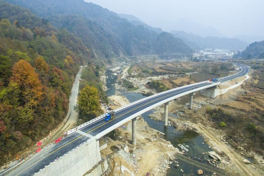 本項(xiàng)工程位于金寨縣燕天路上,是連接天堂寨風(fēng)景區(qū)重要旅游道路。去年“6.30”特大暴雨造成漁潭村境內(nèi)山體滑坡、道路塌方、交通中斷。災(zāi)情發(fā)生后,各級(jí)政府及交通主管部門(mén)十分重視,立即組織搶修,特別是負(fù)責(zé)該路管養(yǎng)的六安市公路管理局在保障通行的前提下,以最快速度組織專(zhuān)家評(píng)審、論證、設(shè)計(jì)、招標(biāo)、實(shí)施。該項(xiàng)工程全長(zhǎng)1356米,包括2座大橋、1座中橋,中標(biāo)施工企業(yè)六安市交通公路實(shí)業(yè)有限公司精心組織、全力投入、克服重重困難,經(jīng)過(guò)242天的艱苦奮戰(zhàn)終于如期、保質(zhì)、安全完成施工任務(wù)。