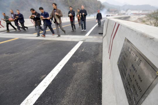 11月10日,大別山旅游扶貧快速通道水毀修復(fù)工程漁潭段改線建成通車(chē)。當(dāng)?shù)卮迕袂描尨蚬摹⑤d歌載舞,以自己特有的方式歡慶這一時(shí)刻的到來(lái).