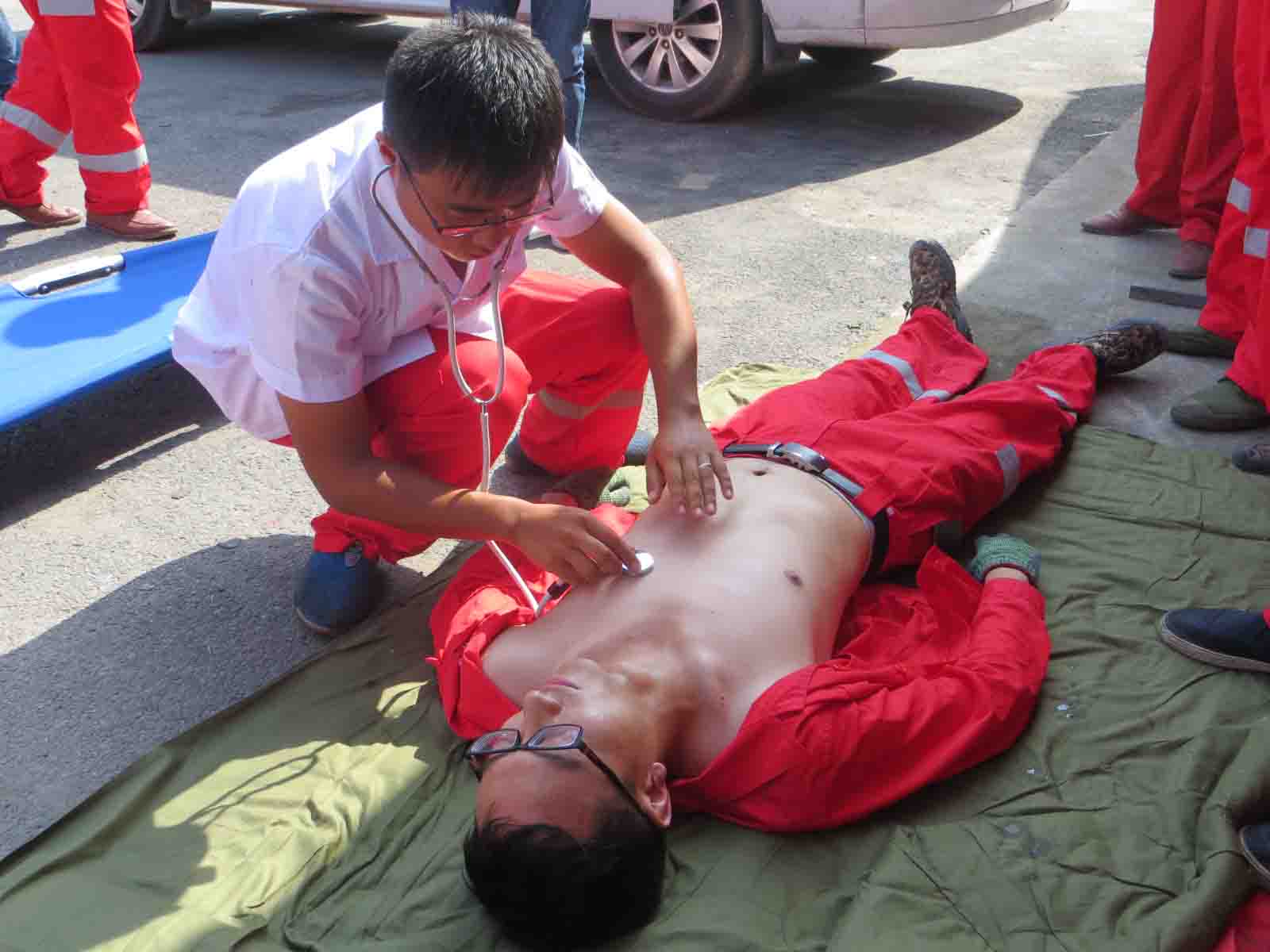 今年是全國(guó)第15個(gè)“安全生產(chǎn)月”,為提高公司職工對(duì)中暑人員癥狀的正確辨別,以及能進(jìn)行科學(xué)處置和搶救,達(dá)到及時(shí)搶救中暑人員,最大限度地減少事故損失,避免安全事故發(fā)生。我公司于6月29日下午15時(shí)20分在六安西拌和廠組織進(jìn)行了高溫中暑應(yīng)急演練,本次演練在公司專職安全生產(chǎn)負(fù)責(zé)人儲(chǔ)總的領(lǐng)導(dǎo)下,由安全部牽頭,工程部、設(shè)備部和拌和廠參與。