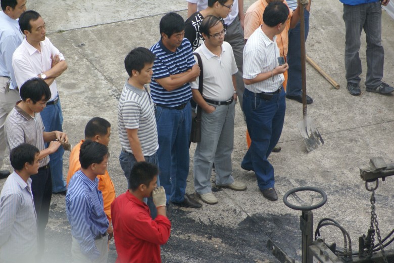 2010年9月10日上午10時,梅山路“白”加“黑”改造工程的業(yè)主,六安市建委副主任曹德林、總工周培勇攜本項(xiàng)目監(jiān)理單位和設(shè)計單位主要領(lǐng)導(dǎo)蒞臨我公司視察,檢查梅山路瀝青砼路面施工準(zhǔn)備情況,并作出進(jìn)一步的要求和指示,公司董事長兼總經(jīng)理萬世林同志率公司各部門全程陪同。